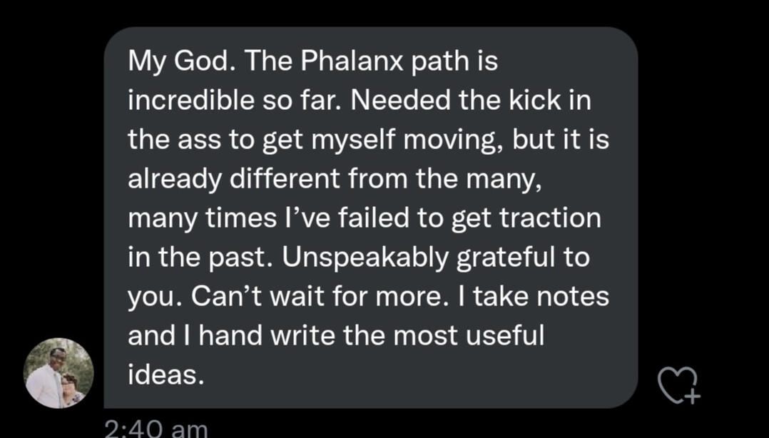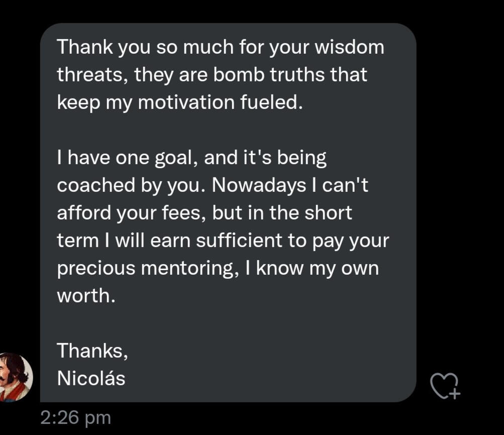 I have found in Leonidas a mentor from a distance. **I was homeless, unemployed & 3 months later I have a job, a place to sleep and am working towards mastery. Thanks and gratitude is what I have for you. **