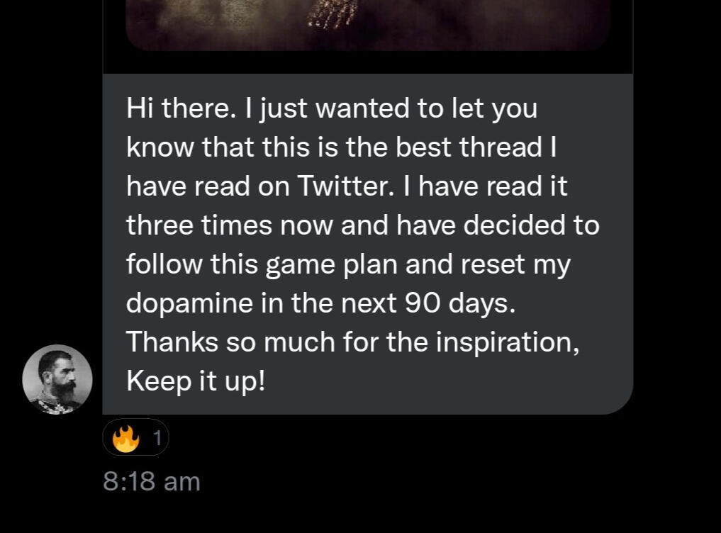 The accountability from the program helped him find momentum.He now has beat all his addictions, has 100% more clarity and discipline.Our program has given him a sense of brotherhood & purposeComplete transformation after dopamine realignment