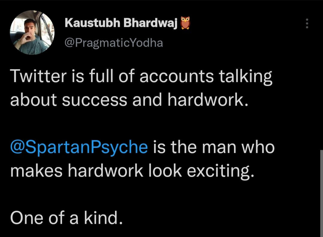 I was looking for answers on how to move on to the next phases of my life. That was when I was introduced to SpartanPsyche. His teachings made an instant mark on me. I was made aware of my limiting beliefs & habits immediately. Now, I meditate everyday, workout, have perfect clarity about my goals and how to go about it.