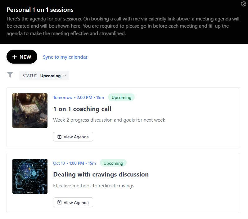 Our training systems involve learning modules that you can complete on your own time. You will also have tasks to complete & habits to track. In addition to having conversations with me.Although this may seem intensive, it is manageable. I would not overthink this. Usually the training plan is designed to work around your schedule.Do not let this time constraint excuse be something that holds you back from genuine betterment.